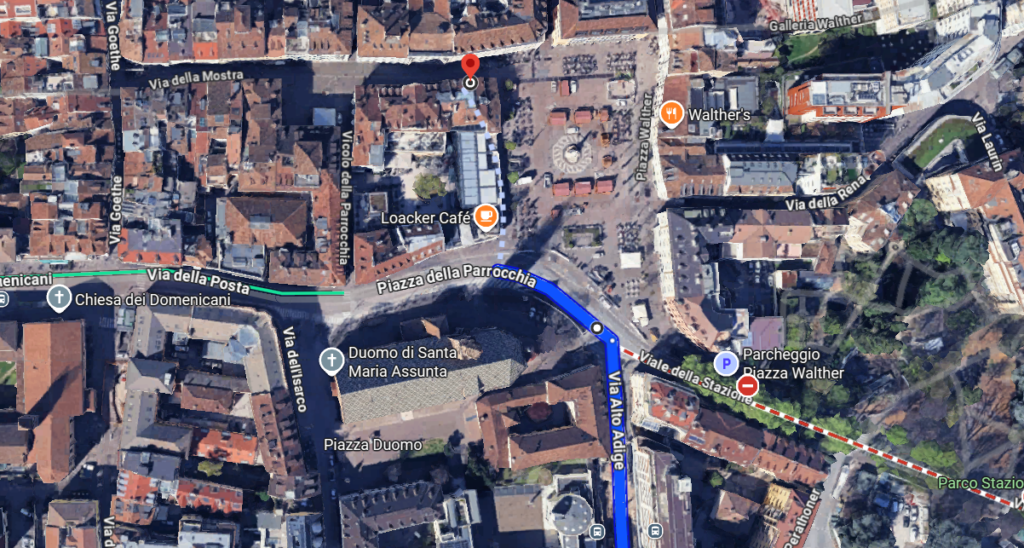 • Nuoroda į maršrutą: Google Maps – Piazza Walther, Bolzano