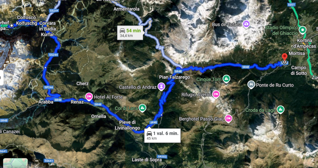 • Nuoroda į maršrutą: Google Maps – Passo Falzarego