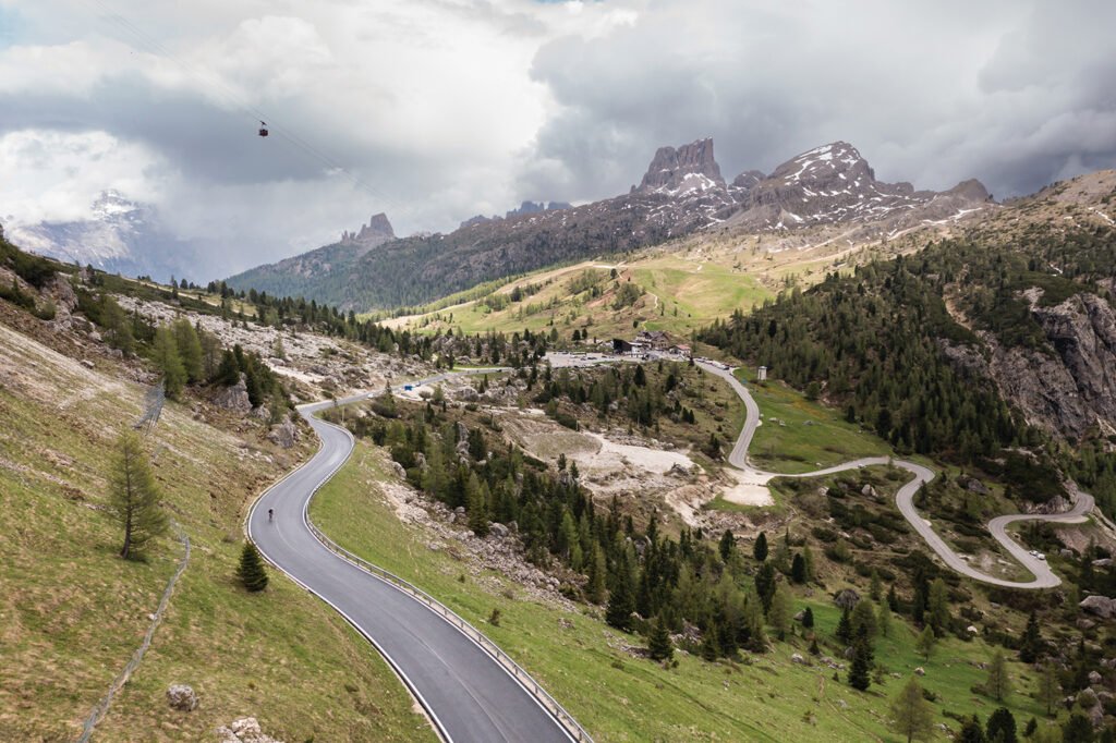 Komentaras: Tai panoraminis kelias su serpantinais, vienas gražiausių Dolomituose.